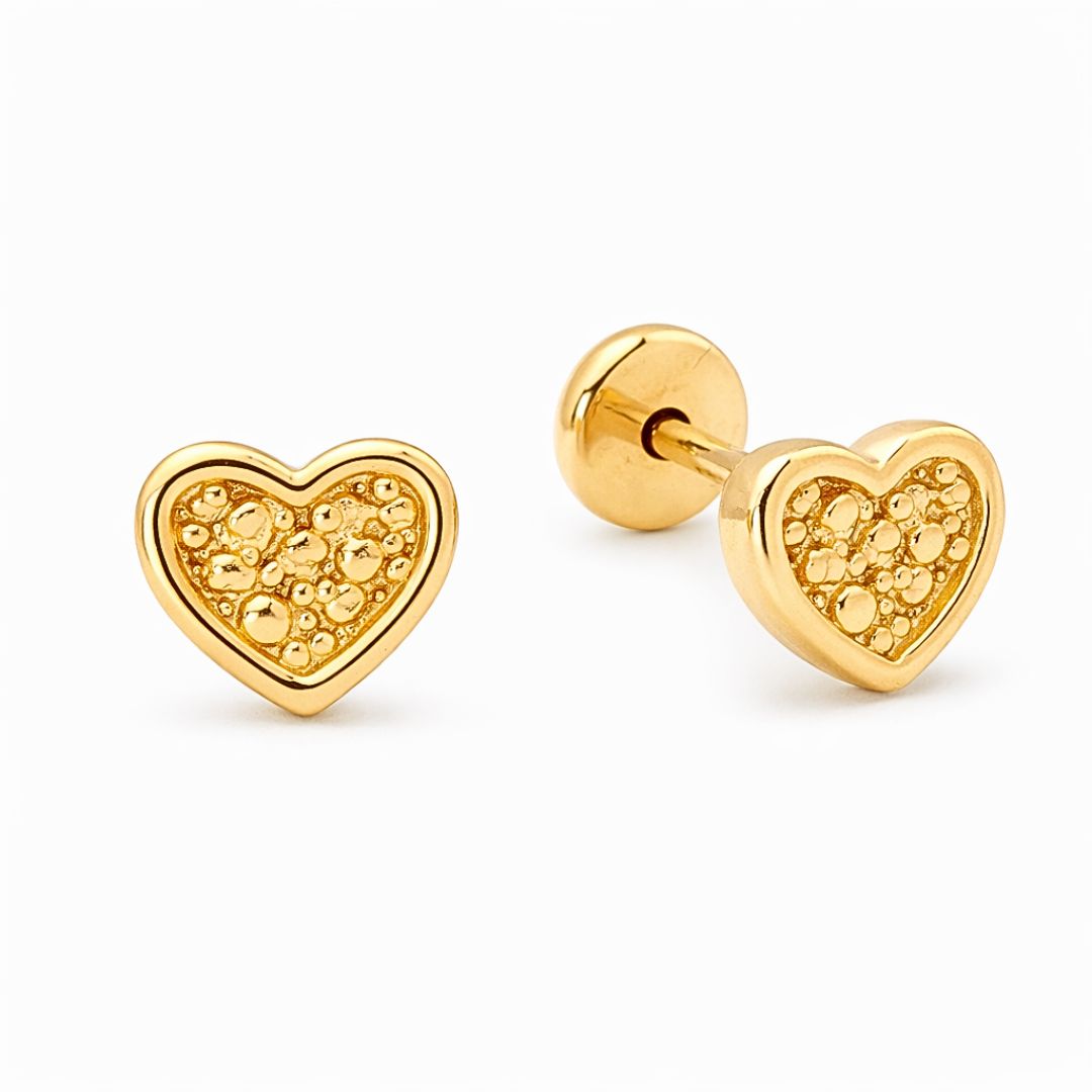 Brinco baby CORAÇÃO CRAQUELADO FOLHEADO A OURO