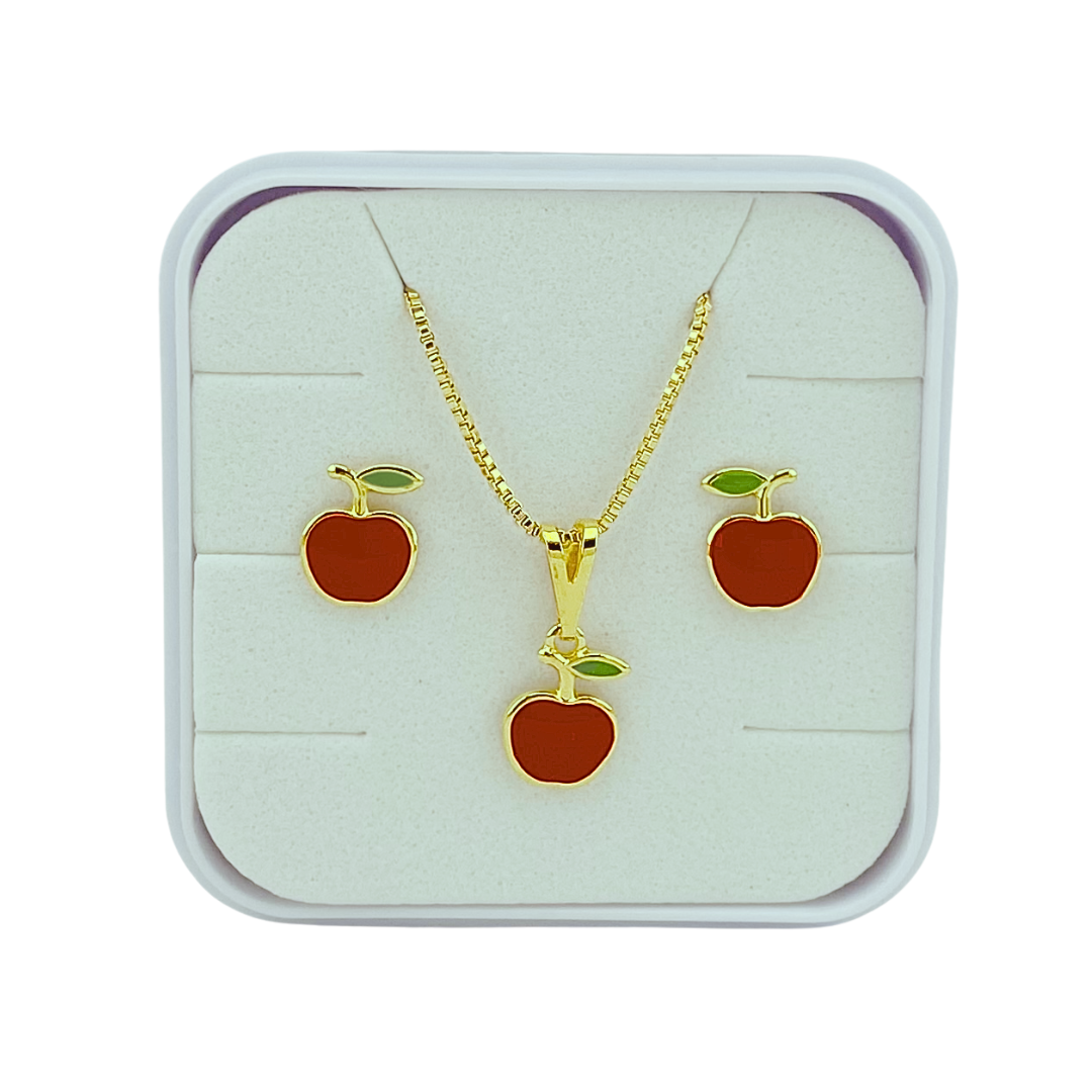 O Conjunto Brinco Infantil + Colar Maçã Folheado a Ouro - Tarraxa Baby da marca Family Collection são a escolha perfeita para acompanhar os momentos especiais da sua criança. Com um design delicado e sofisticado, este conjunto é ideal para pequenos que buscam conforto e estilo em suas primeiras joias. Cada peça é fabricada com muito carinho e amor. Folheado a ouro, garantindo um brilho encantador que completa qualquer look.
